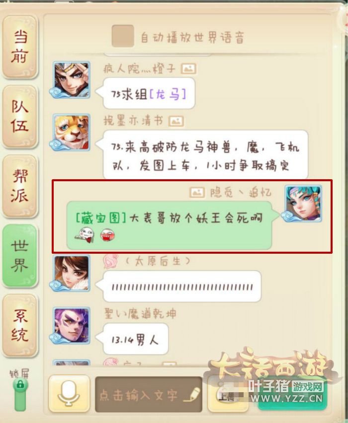 从来没见过这样的人啊,还每次都要求挖到妖王,那好吧,满足他! <<<点击进入大话西游手游论坛讨论>> [编辑:猴战将传媒]