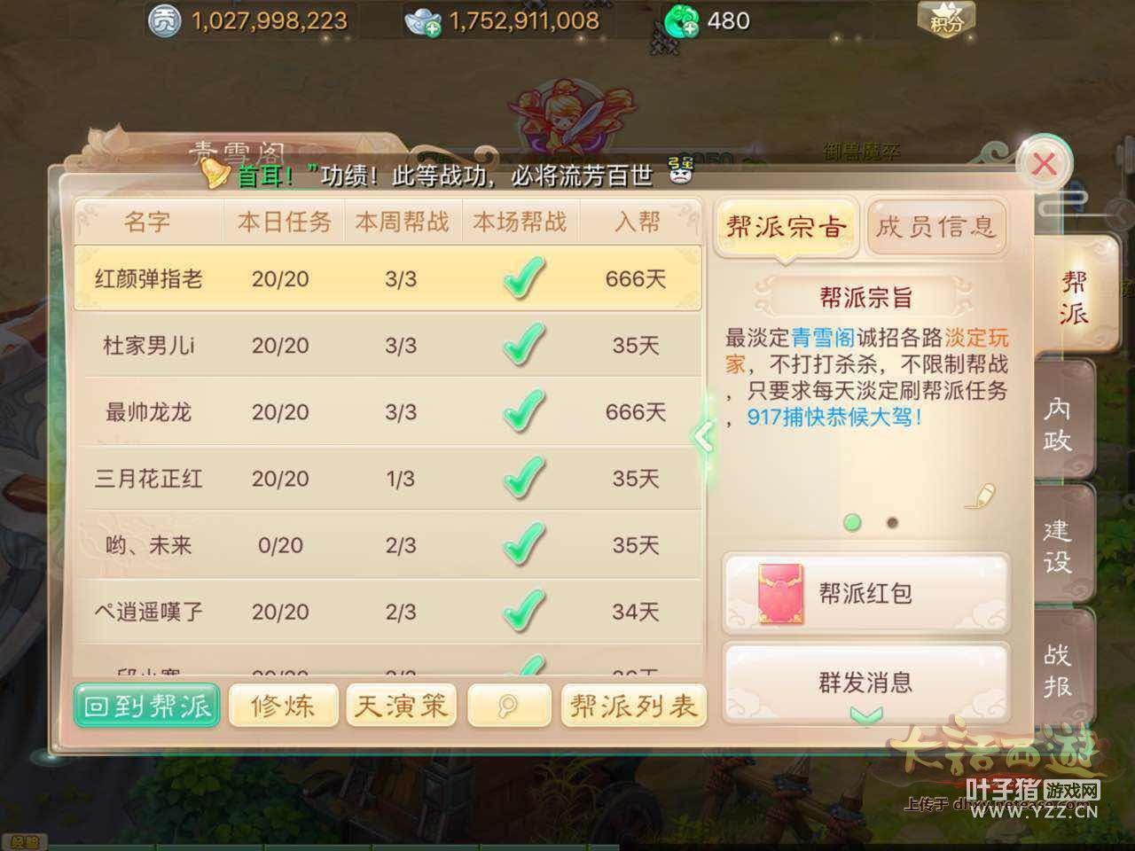 毫不客气地说,我个人对此非常骄傲。我陪着它、它陪着我,一起成长。 >>>推荐阅读:帮战好队伍累计狂杀2000人!最高连胜28队 天数比我多的肯定是没有的了,我这是开服第一天就入了帮;天数跟我一样的,相信也不多。而且我这还是个大号,帮还是个满员310活跃100的帮。 [编辑:小羽]