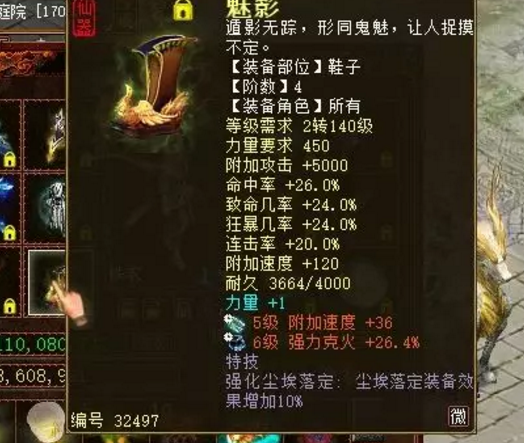 ![]() 五阶龙族仙器:蓝字炼化克火27.7,炼器克火15,难怪属性可以这么变态。 ![]() 鞋子是双常规大力的四阶仙器鞋子,这个比较常见,打造了一个5级加速度宝石,一个6级克火属性的宝石。 暴力伤害演示: ![]() 可怜的金银铜铁鬼,就这么一回合凉凉了。 对于这位五阶大佬的的属性和伤害,大家有什么想说的呢,欢迎评论留言。 [编辑:做她的猫]