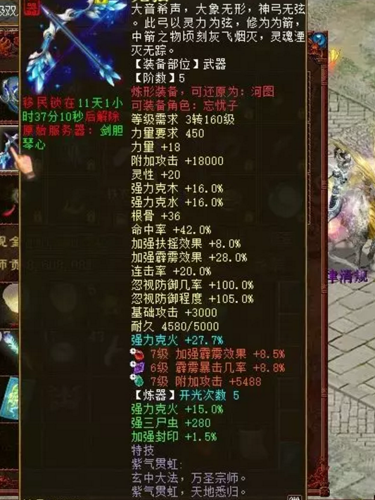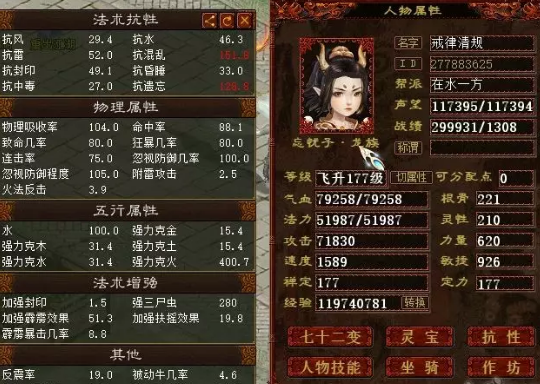 大话2龙族已推出半年,不少普通玩家都很好奇到底成品的龙族打造能够达到什么逆天属性?今天让我们一起看五阶龙族的装备图和属性图究竟有哪些过人之处。 ![]() 首先来看一下这位大佬的面板属性: 人物等级飞升177级,有7.9万血量、7.1万攻击数值以及1589的速度。 抗混152,抗遗忘128。 大力属性方面:抗物理104,命中88致命80狂暴80连击75,双忽视防御100+105。最逆天的是克火数值竟然达到了400,加强霹雳效果51.3,这就是一个五阶龙族的属性,感觉不是一点点的暴力呀。 然后再来看看大佬的装备: