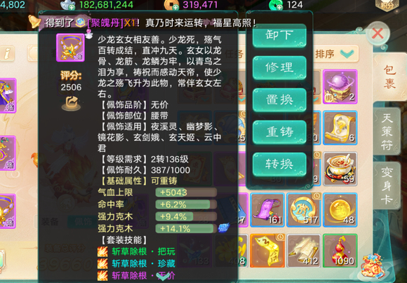 大话西游手游千元号怎么玩?有大佬玩家分享关于自己的千元号成长之路,开区1000元,后续补月卡补到了2400,历时500多天,目前武器5界,4级神兵,一套克木配饰,带个火娃。八阵图运气不错,勉强够用。 开区5速洗了2E,这应该是我踩的最大的坑,但是没办法,前期没有敏装根本玩不下去,想攒钱提升,但也玩不了混子,如果再来一次,我还是会洗,下面分享我500天的游戏经验: 1、千元档开区,仙玉怎么用,除了成长基金,活动的桃花珍露,点出火娃之后,全部每日一抽,换帮修。2、开区玩几个小号,哪个出3速玩哪个,5速最好,但是很极限,有点难度。3、收物资,所有炼化不要碰,高装洗出敏捷或者灵性就好,其他的全卖,多余的银子,收亲密丹,金流露,其他的都不稳。4、珠贝换宝石,好心换宝石,所有换宝石,郭老板换五色石,宝石,为什么换宝石,因为八阵图要五色石,前面不用考虑孔雀的事情,别去听他们说不要换宝石,前面你没有输出攒出孔雀没有丝毫作用,在不影响攒钱的前提下,提升输出的唯一途径就是八阵图。 5、时间来到2转130,大概攒了20E,重要转折点,所有资源包括仙器武器,不要玄都2界,全卖,8.5E买了一个5级神兵武器,带一套珍藏残梦,买成品双克的属性配饰,因为这个到合区之后,你会发现最低价3E还不是特别好的,2转130很多不会玩家摆的双克和单克爆的戒指能捡漏,我是10E买了一身,现在身上的一个挂件老板12E收我的没卖。 6、来到3转,此时又攒了10E,乘着五级最贵的时间,10E卖掉它,换成5界武器,以后攒钱换一套无价残梦,千元档不考虑游云,八阵图毕业宝石可以暂放,换舒筋散出孔雀,4级神兵衣服卖掉它,出3界衣服或者帽子,找个炼化好的4级神兵项链,安心养老到钱够出朱雀。 7、发一下自己的输出,由于队伍里有女鬼,带的龙殇套,遗忘秒百万轻轻松松。 低消费下底子物资同步进行,可玩性高,不培养底子,后面会后悔的。信物我也洗的很头疼,不过有一次鸡驴了一手,2个橙色,吸一个打一个,也花了点钱。洗一年才勉强够用。 [编辑:ssc]