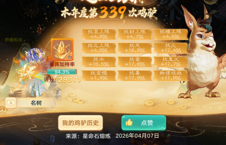 大话西游手游星阵加持率94.3%!新区大佬全橙色星阵属性