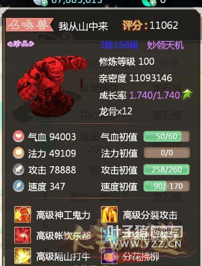 大话手游排行榜第一高倍泥石怪 9万血将近8万攻
