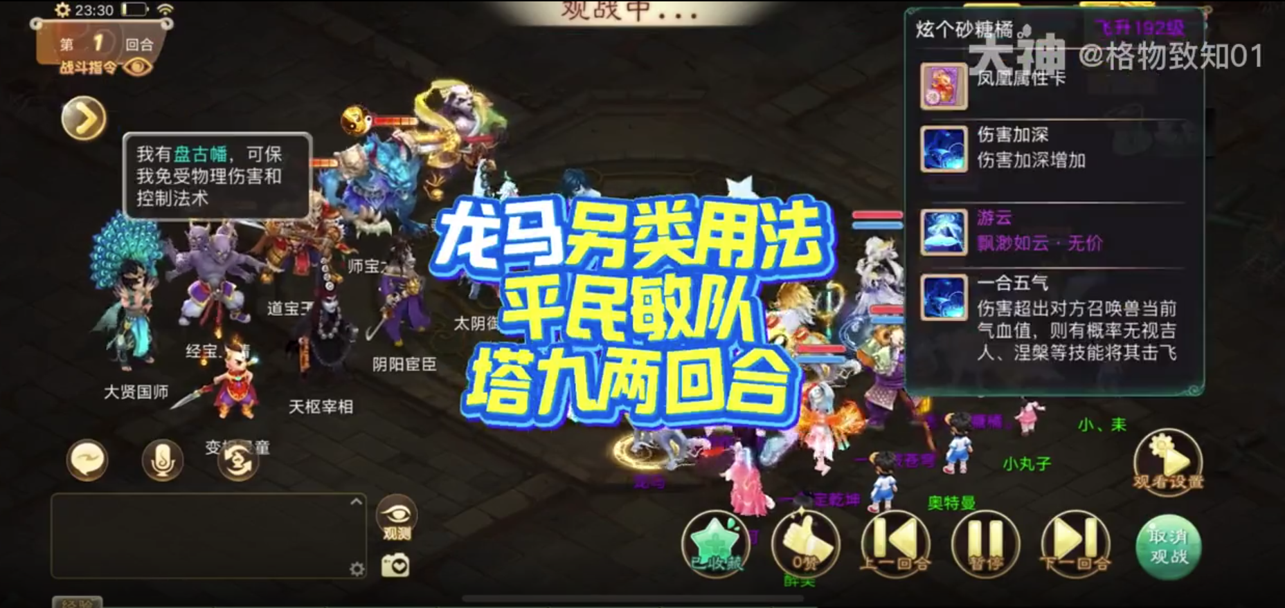 大话西游手游龙马另类用法 敏队塔九两回合就能搞定!