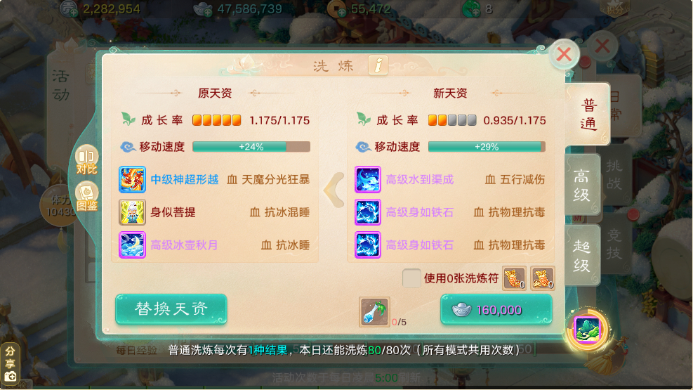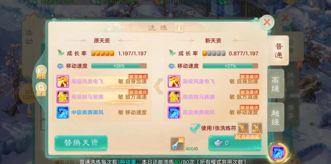 投稿人: 落幕下的妙妙 好家伙!这个幌金环速度真高! 这个幌金环四项速度叠加,如果你拥有一件,你会给哪只召唤兽用? 投稿人: 别闹揉面呢 元旦孵蛋你鸡驴了么? 七天的孵蛋任务圆满完成,有没有人一个鸡驴也没有的?看来我不是一个人,有人8个号,一共鸡驴5次,能卖钱的就3个,最值钱的是黄金兽元气丹。 投稿人: 响亮的名字 白瞎了一个三高 看看三高技能,再看看成长率,瞬间就不香了!真是太浪费了呢! 投稿人: 丁香花萝 孩子命盘技能完美毕业了 嗜血狂攻技能吃单大力单体爆发用,石破天惊群体爆发,真是美滋滋啦~ [编辑:ssc]