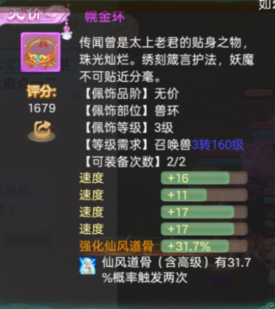大话手游四速度叠加幌金环有多快?成长率真是白瞎了一个三高