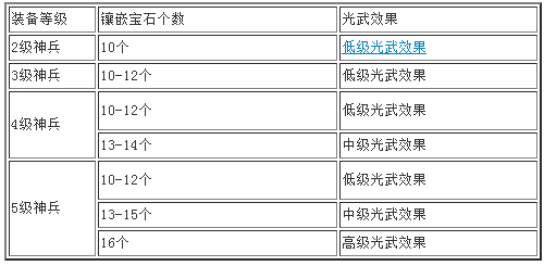 大话西游手游中的神兵仙器发光的效果怎么样呢?相信大家都非常感兴趣吧!特此小编收集了一番,给大家带来各种族职业的神兵仙器发光效果图集,希望大家会喜欢,同时征集更多的牛图。 首先,据平民玩家反馈,不知道如何判别神兵是如何才能够发光的?其实1级神兵不会发光,2-5级神兵镶满一定数量宝石都会有发光效果,分低级、中级、高级,详情见下表: 目前我们从部分玩家的截图中可以看到以下几张神兵低级光武效果图,目前4-5级神兵中、高由于有携带等级要求,所以暂时没有展示资源。同时也欢迎大家补充其他角色使用神兵的发光效果图。 虽然高级神兵光武发光比较少见,但游戏肯定有很多玩家携带着的,以上的图集不全,在此征集各神兵发光效果图,欢迎大家来补充。