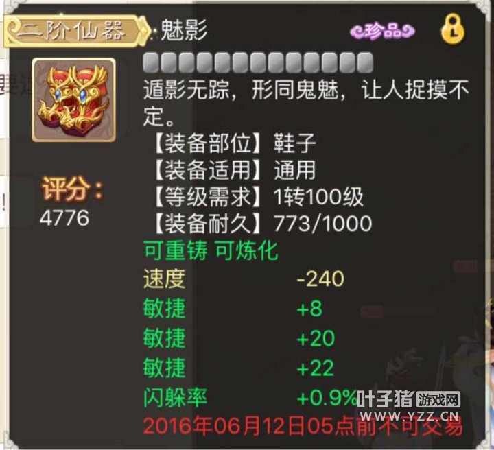 每个人都喜欢大话的炼化,但是当自己出现三敏属性本是该高兴的,这位玩家却怎么也高兴不起来,看看把! 你说我是把这个鞋子继续炼化,还是把它卖出去,还是自己存起来作为一个最奇葩的收藏等待升值呢?真尴尬~ <<<点击进入大话手游论坛讨论>>> [编辑:猴战将传媒]