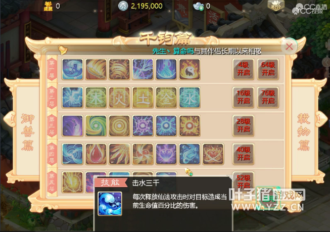在新版的天策符中,将会根据种族区分可获得的天策符,同时新增部分实用天策符,先睹为快! 新版天策符讲解之仙族篇: 先看新增的大招技能:击水三千:每次释放仙法攻击时对目标造成当前生命值百分比的伤害。 以下是详细视频讲解: [编辑:小羽]