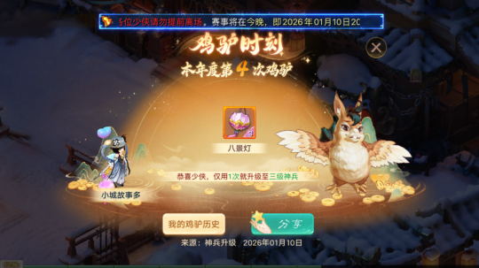 大话牛图最新一期,本期内容导读: 1、这猴子,一刀一个?! 2、长安城玩家1次升级3级神兵 3、看看这个四级神兵怎么样? 4、一个牌子刚进园子就给隐身 这猴子,一刀一个?!(分享人:蒜苗回锅肉) 长安城玩家1次升级3级神兵(晒图人:小城故事多) 看看这个四级神兵怎么样?(晒图人:与歌马云红) 一个牌子刚进园子就给隐身(晒图人:离坠) [编辑:ssc]