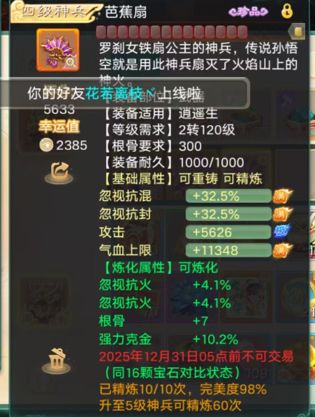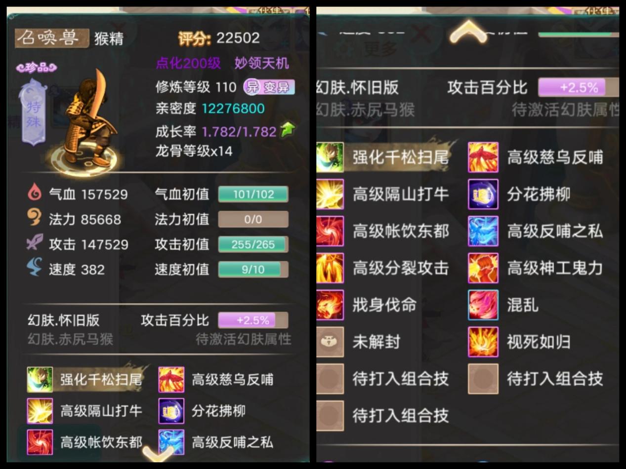大话手游长安城玩家1次升级3级神兵!14.7万攻击的猴精来了