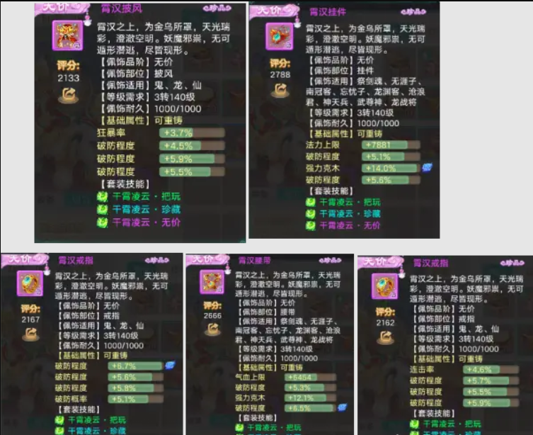 大话手游任务男龙大力龙装备配饰,大力龙装备打造方案!大话西游手游任务男龙大力龙装备可以参考这个攻略。 一、角色定位与核心属性: 大力龙作为物理输出核心,核心属性 破防程度+克+攻击力+狂暴率+破防概率+命中率 (幻影龙有可能要加连击次数+连击率比较舒服) 二、种族技能: 破甲(群体攻击,日常任务必备) 横扫(暴力伤害,提升清场效率) 治愈(对友军增加治愈状态) 三、装备打造方案 1. 装备选择 武器、链子、鞋子 建议仙器 帽子和衣服优选仙器(金蟾装备/神兵也可以) 炼化属性:技能加成(破甲/横扫)/力量+三条属性克/两条属性克 2. 套装搭配 霄汉/应龙/幻影(属性当然优先选择破防程度其次克然后命中/狂暴/力量等) 下面是我用的霄汉配饰属性: 我的全力量加点整体属性(龙马卡属性..修正男魔)仅供参考: 如果您有任何补充或建议,欢迎评论区留言分享。 [编辑:ssc]