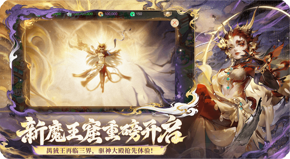 沉寂许久的魔王窟深处风云再起,禺狨王即将再临三界!全新魔王窟副本——驱神大殿抢先体验!