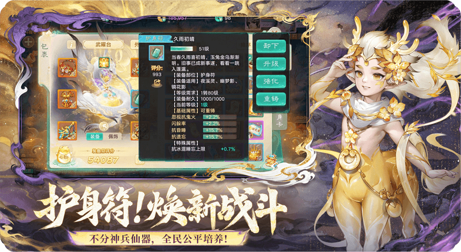 传承经典,护身符系统开启抢先体验!打造、升级即可轻松获得强力属性,强化、洗尘更可让少侠如虎添翼!