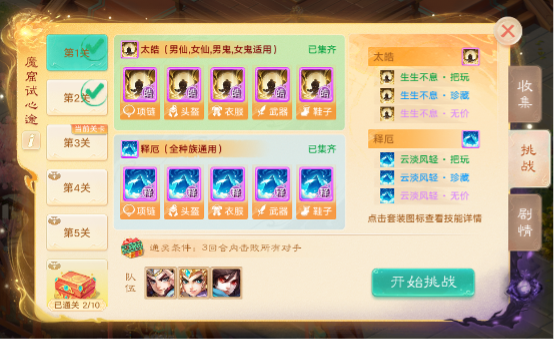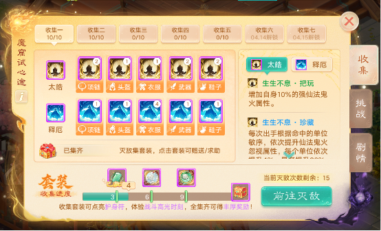 3)集齐套装即可进入单人挑战关卡,全新套装战斗体验等你来战,更可体验全新战斗高光时刻,快来一试!