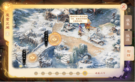 风雪蔽日,一念圣魔!等级≥80级的少侠,可在任务栏接取《魔窟试心途·见闻》系列任务,通关每日挑战关卡即可逐一解锁。