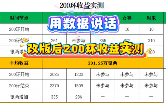 用数据说话!大话西游手游改版后200环的收益降了?