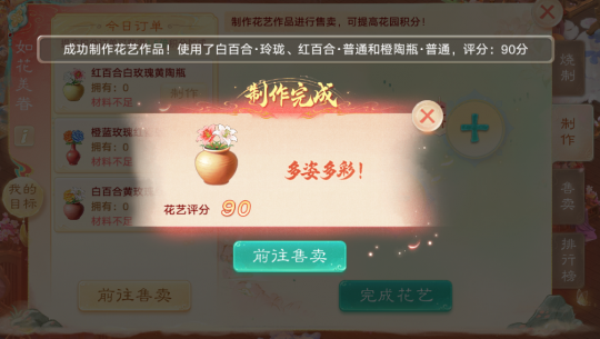 大话西游手游烧制花瓶真是太好玩了,猪妹玩得都上头了。每天根据订单烧制红、黄、橙、蓝、白,不同颜色不同品质的花瓶,有瓷瓶和陶瓶两种,然后花材是由花园主种植的,我们花匠只需要选用花材,加上自己的花瓶,就能完成花艺上架售卖,获得积分冲击排行榜拿奖励啦~ 更多大话西游手游精彩视频,记得关注“大话西游猪妹”,叶子猪大话手游bilibili唯一官方账号哦,五开搬砖交流,组队分享经验,每天猪妹都会为你带来第一手爆料! [编辑:ssc]