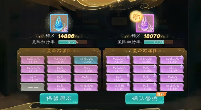 大话西游手游合成星阵最少资源教学来了!想要白票到70以上的星阵,尽量不要用橙色词条,这是最省钱的关键。 咱们优先使用紫色词条,1+1紫色去合,然后2+2紫色,不断去合成更多的紫色词条,直到完成70%以上,考虑用橙色词条去合成80%、90%! [编辑:ssc]