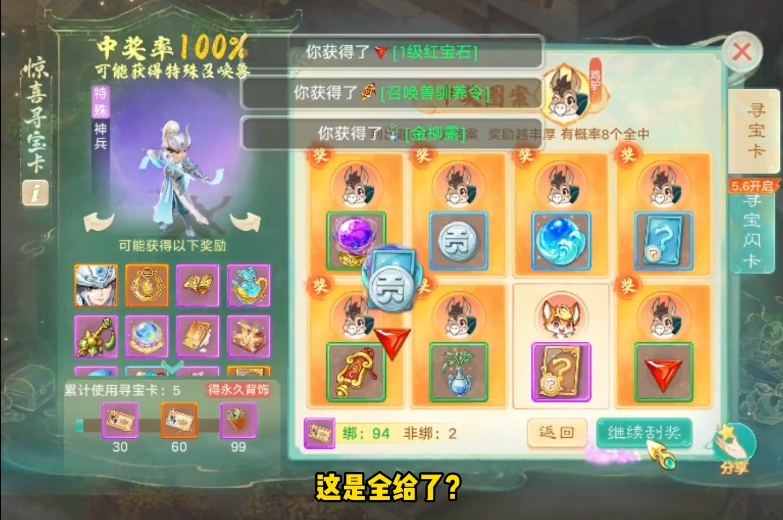 大话西游手游玩的就是一个真实!102张寻宝卡开刮看看大结局
