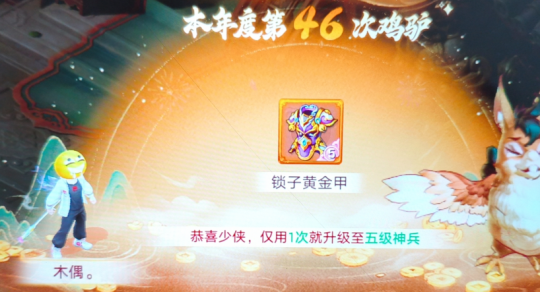 大话手游这位老铁鸡驴眷顾,仅用1次就升至五级神兵!