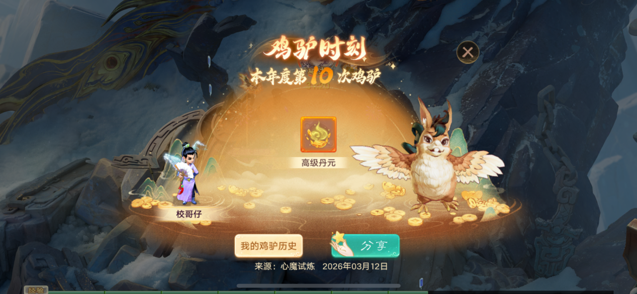 2、一次就成功了,当时我都懵了 3、恭喜自己!顺利得到高级丹元