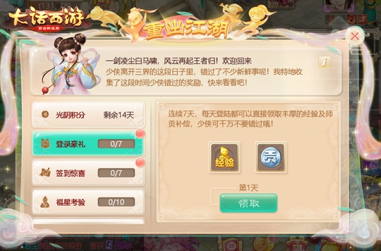 新服【白露横江】明日开启 真金等你拿!全新龙族相伴左右,国风江湖任凭闯荡,大话手游道具服新服【白露横江】明日12:00正式开启,和朋友一起抱团预约新服,就能赢取海量奖励! 为备战即将到来的修罗古城,新服【白露横江】 追加奖励 !签到就能抽 元宝黄金吊坠,六福金猪! 每天满活跃度抽祭剑魂手办!如此高额刺激的奖励,赶快准备明天进服! 玩家可以通过新服>>专题页面进行抱团预约,在新服开启之后就能获得预约抱团礼包,内涵补天神石、海量师贡、凝魂丹和驯养令!为了助力玩家更快闯出一片新天地,在新服开启之后,玩家每到达一定等级即可获得大量奖励!新服开启后第20天的5点,练功排行榜前三的玩家可获得“练功狂人”特别称谓,综合实力榜前三的玩家还能获得“无敌最寂寞”特别称谓,向全服玩家尽情展现自己的傲人成就! 另外,新服开启后玩家每日连续签到还能获得超值大礼包,除了能享受不同坐骑体验,还能获得海量经验、师贡以及一级神兵!开服后14天内,玩家每日累计满活跃度,都可获得一张抽奖券,使用抽奖券将有机会获得猫眼电影50元兑换券、爱奇艺VIP月卡、网易严选200元代金券、限时头像框、限时装扮特效、海量高级道具! 好礼加码!龙回江湖赢取珍稀小五叶除了为初入江湖的朋友们准备了多重新服好礼,大话也为重出江湖的玩家们特别设置了丰富的回归玩家福利。回归玩家每天登陆游戏都可以领取经验和师贡奖励,此外玩家完成一系列回归任务之后还能获得丰富的道具奖励。不仅如此,重出江湖的玩家还能获得天庭任务加成buff,更有机会抽取限时时装和珍稀萌宠小五叶哦! 回归玩家可以获得持续7天的组队buff,与重出江湖玩家组队的玩家,当天的第一场战斗可以额外获得好心值,之后每场还可以额外获得好心值。重出江湖玩家的好友也有机会获得萌宠小五叶,快召集你的昔日好友们一同入驻新服吧!