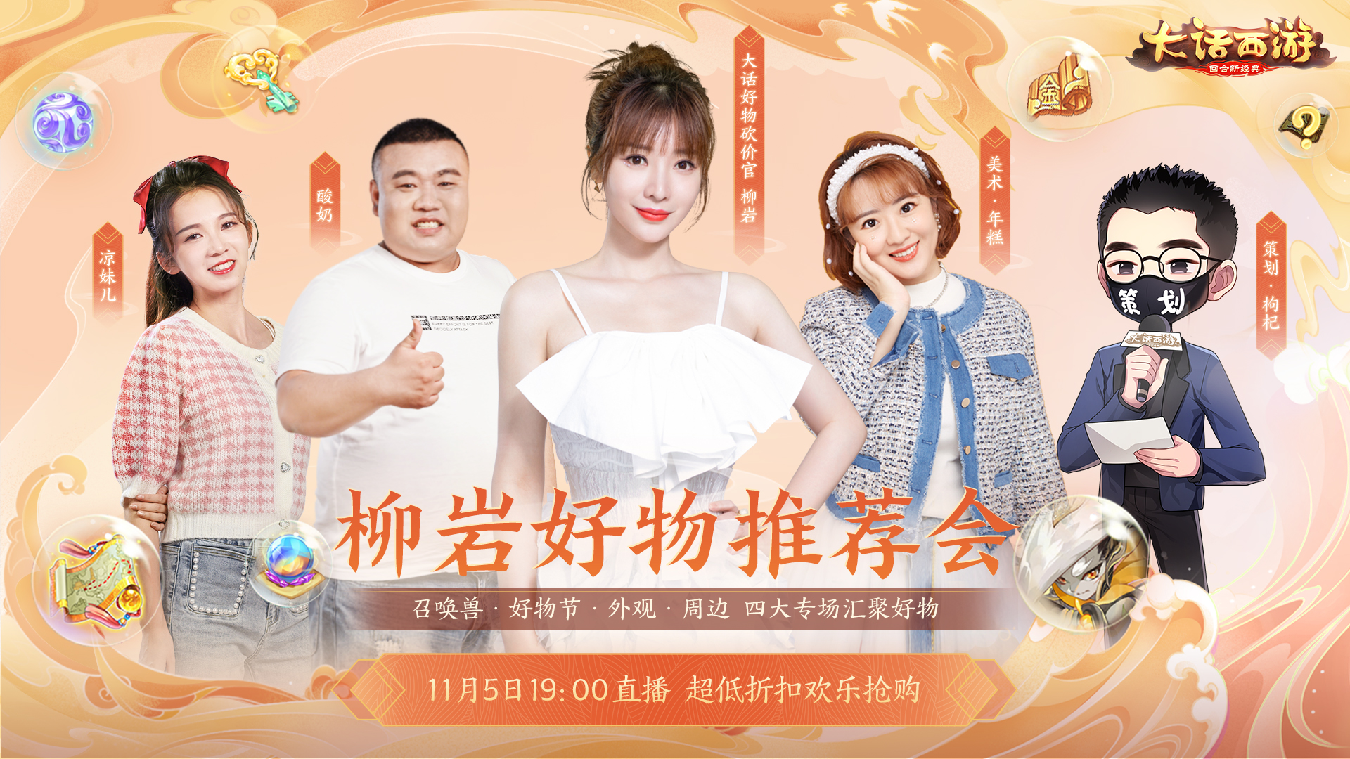 柳岩x大话手游好物直播明晚7时开播!全场好物5折起!