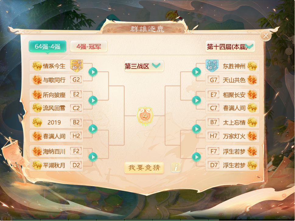 今天下午两点 第十四届群雄逐鹿争霸赛开战!群雄争霸,逐鹿巅峰!第十四届群雄逐鹿争霸赛的64支队伍将于今日(3月11日)14:00起连战3日,为玩家呈现顶级的PK盛宴! 群雄逐鹿 顶级服务器之战,角逐巅峰赛之争作为群雄逐鹿巅峰赛的次级联赛,群雄逐鹿争霸赛每年举办六届,每三届群雄逐鹿争霸赛累计「巅峰点」总和排名前八的战队,将获得群雄逐鹿巅峰赛的参赛资格,与巅峰高手决战九霄! 64强队伍将在3月11-13日经过64进32、32进16、16进8、8进4的比赛;最终在本周日17:00,进行半决赛和最终的冠亚季殿争夺! 64强火热出炉 冠军虚位以待“战神”与“奇袭”孰与争锋?在本届64强队伍中,不乏有上届出众“战神队”如:【情系今生】、【莺歌燕舞】、【相聚长安】、【君临天下】;更有不少黑马战队卷土重来,如【奇袭-海纳百川】、【战神-2020】、【战神-共话江湖】。【战神-情系今生】是否能卫冕冠军?上届赛事最大的黑马【战神-君临天下】是否能再取佳绩?在上届中连克两支战神队的【奇袭-海纳百川】是否还能神勇如往?在上届中表现不俗跻身八强的【战神-2020】和【战神-共话江湖】,是否能进入下一轮的挑战?群雄的战火早已暗流涌动,冠军之位静待无畏强者! 人气解说加盟 全网同步直播本次赛事特别邀请了温小意、落封辰、沧海三名人气解说,带来详细专业的赛事解读,介绍战队特色,分析实时赛况,帮助大家有更好的观赛体验。 明天下午2点起,CC直播、斗鱼直播、虎牙直播、微信视频号、look直播、抖音、快手直播、优酷直播、一直播、微博直播、爱奇艺等11大平台将进行直播,千万不要错过哟! [编辑:叶子猪小秘书]