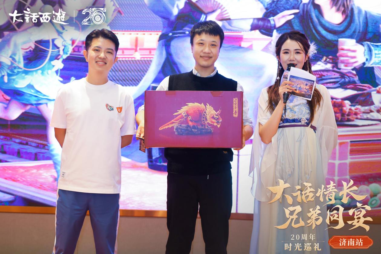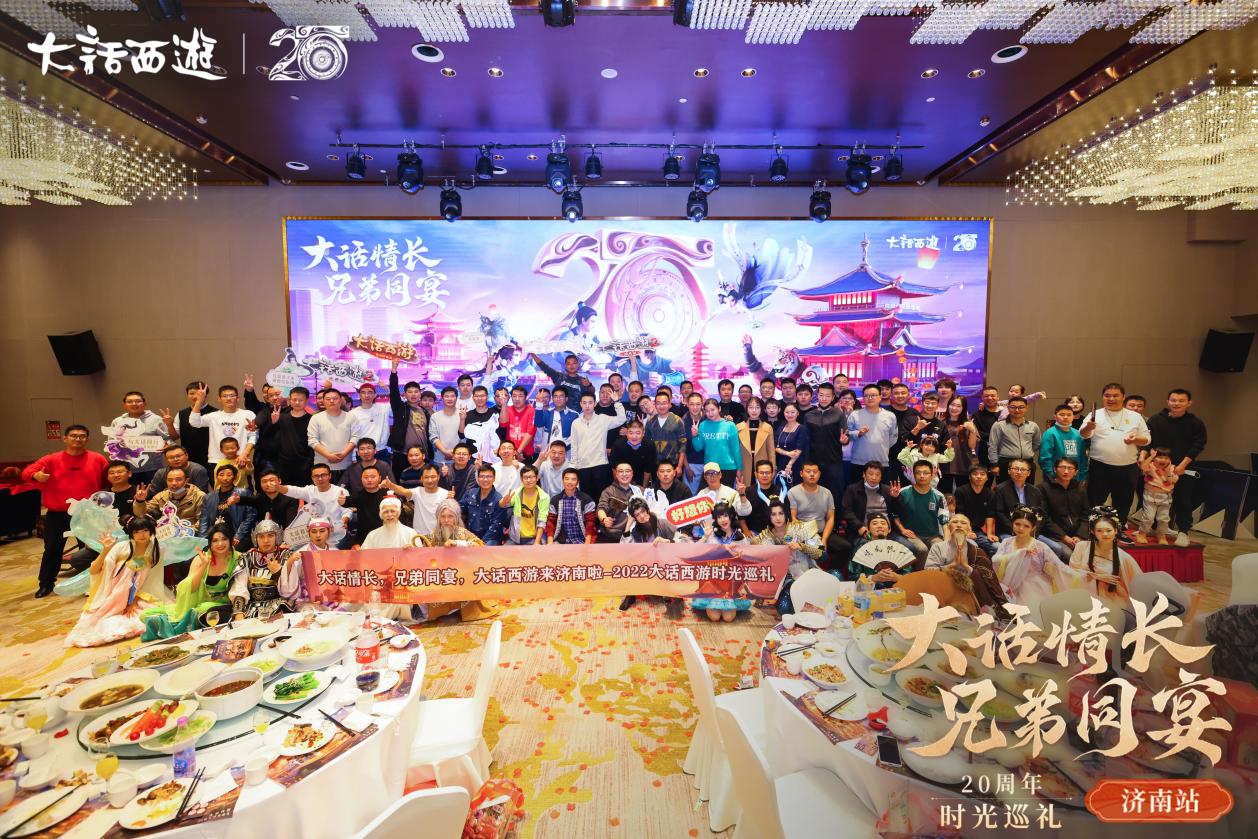 大话情长,兄弟同宴!大话西游2022年时光巡礼济南站活动圆满举行。济南的大话兄弟们热情参与,高朋满座欢宴一堂,用情义与温情诠释和大话的不解之缘,留下难忘回忆。大家也为下一站的兄弟们送上诚挚祝福,一起期盼大话未来更加美好! ? 济南别称泉城,拥有趵突泉、大明湖等七十二泉,有“家家泉水,泉甲天下”的美誉。10月29日,大话兄弟欢聚济南,开启大话西游2022时光巡礼,欢声笑语就像济南的泉水涌动,展现出大话江湖的悠长情义与蓬勃生机。 济南站福利多多,面对兄弟们的热情支持,大话也拿出了十分诚意招待。20周年时光巡礼伴手礼,现场签到即得,还有丰富室内游戏,”情义入壶“”三界科举“”版载千秋“”奇遇合影“等精彩互动环节欢乐无限!此外,现场每个玩家都收到了来自大话开发组的手写问候明信片,丝丝情义,温暖传递。 ? 现场参与互动游戏集齐印章的兄弟,均有机会换取”好想你“健康食品礼盒。甜蜜的红枣正如同大话兄弟们之间深厚的情谊,温暖陪伴、丝丝入心,火红的礼盒寄托着大话20年如一日对玩家不变的关怀,也衬托着时光巡礼活动现场火热的气氛。后续时光巡礼现场,都将有”好想你“健康食品礼盒领取,大家不要错过了喔! ? 兄弟们对舞台互动游戏也热情满满,“大话长情筒”传递的歌词逐渐变形,“长情找不同”环节更是互飙演技找出卧底,各种意想不到的状况引发爆笑连连,将现场气氛推向高潮。 ? 20周年时光巡礼,情义相聚意义非凡!互动抽奖环节由现场20号玩家担任特别颁奖嘉宾,珍稀年手办、“唐宫乐宴”摆件、虎猫生威摆件、五常大米等精美礼品让大家笑逐颜开。 ? ? 精彩开场节目由大话Coser们倾情演绎,大话精灵、渔村村长、何大雷、嫦娥等大话经典NPC依次亮相,红拂女、龙渊客与骊珠儿也献上了精彩舞台表演,熟悉的大话元素让大家想起了哪些江湖回忆呢? ? 多年好友线下见面,合照自然得安排上。而大话Coser作为大家游戏中的老友,也和兄弟们亲切互动;龙渊客、骊珠儿与红拂女更是化身接待大使,与各路大话兄弟合影留念。 ? “大话美食漂流计划”奉上来自广州开发组的特别祝福,广式茶点、粤菜精品安排上。济南站的兄弟们,也票选出了给下一站石家庄兄弟的特色美食,把江湖情义通过美味传递下去! ? 活动最后,玩家代表先后上场发言,分享自己与大话相遇、相识、相知的长情故事。20年情义相伴,玩家与大话之间的点点滴滴在温馨感人的氛围中,时光巡礼济南站的活动也圆满落幕。大话情长,兄弟同宴,时光不老,我们不散! [编辑:叶子猪小秘书]