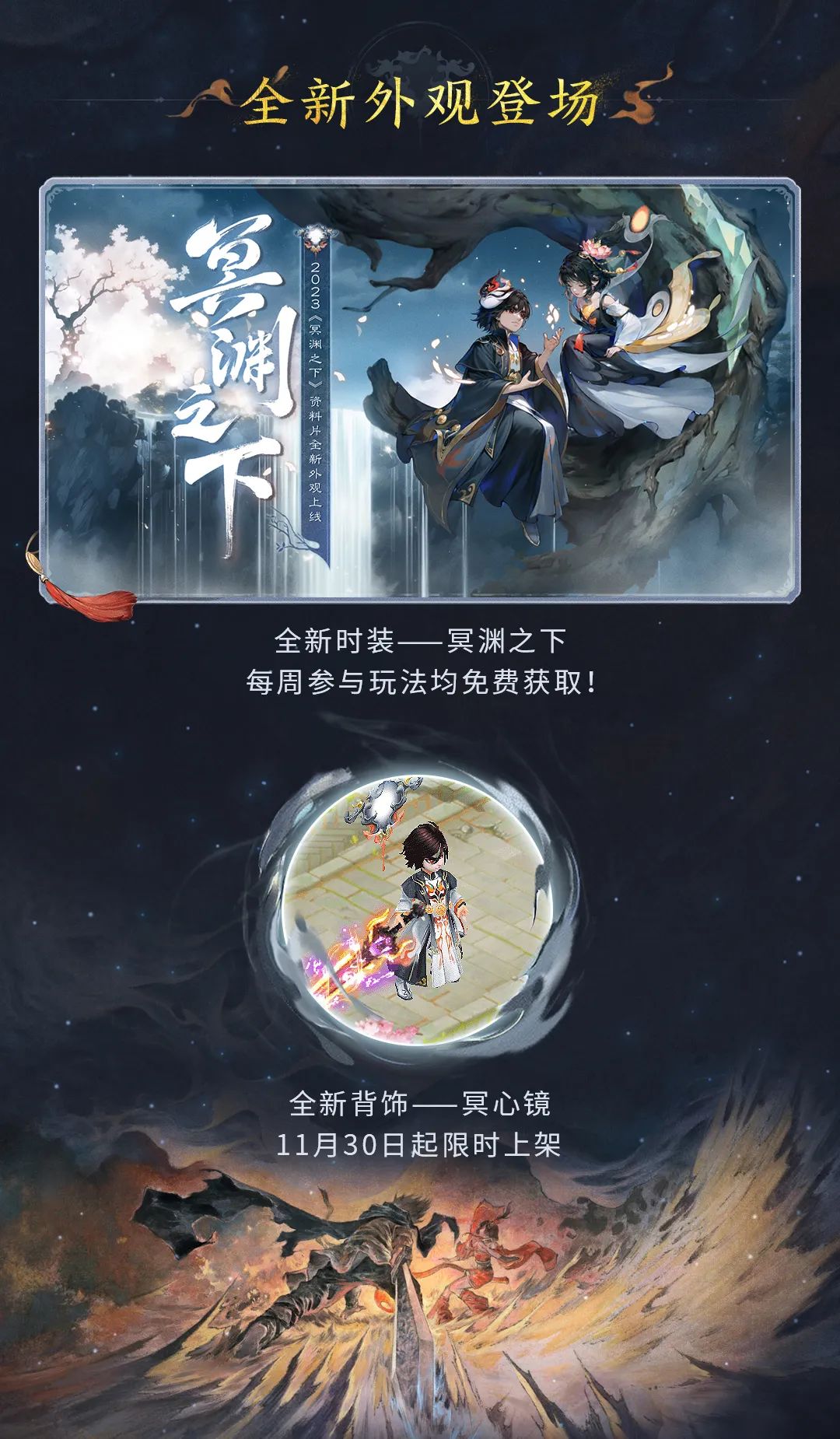 【冥渊之下】 新玩法、新副本、再赠新时装!《大话西游》手游年度资料片《冥渊之下》即将在11月30日上线,版本内容前瞻今日开启!下面让我们一睹为快! 更多资料片资讯,请锁定叶子猪《大话西游手游》官方合作专区。 [编辑:叶子猪小秘书]