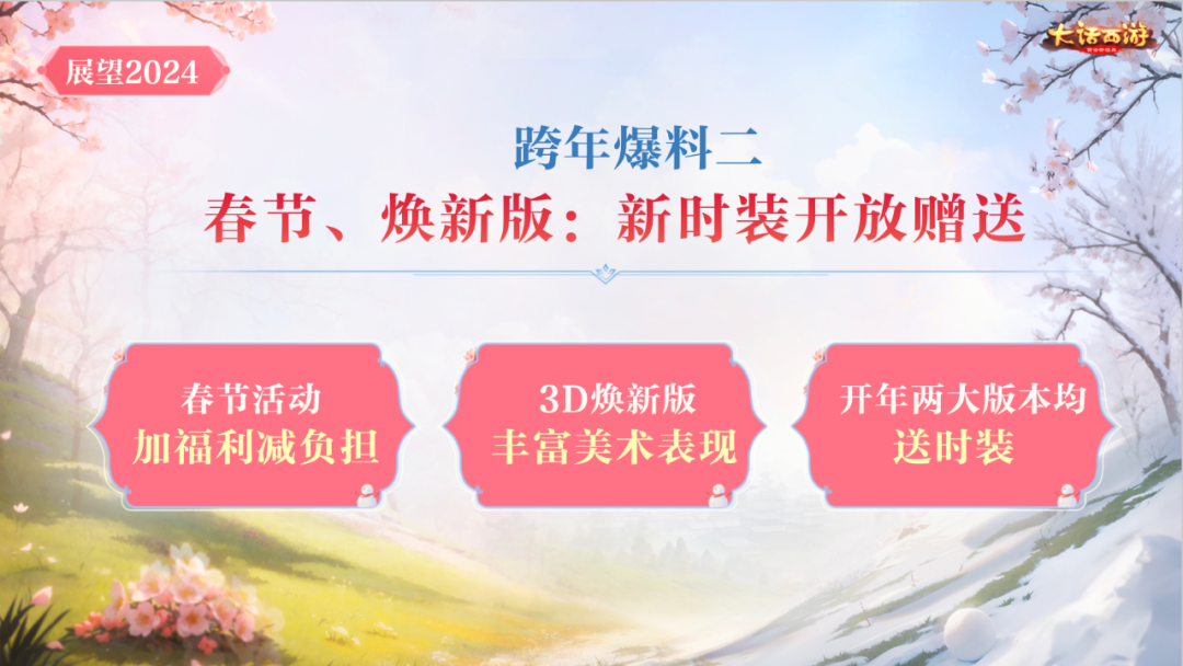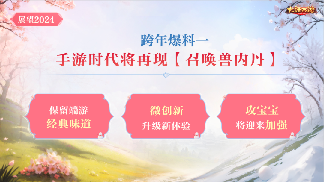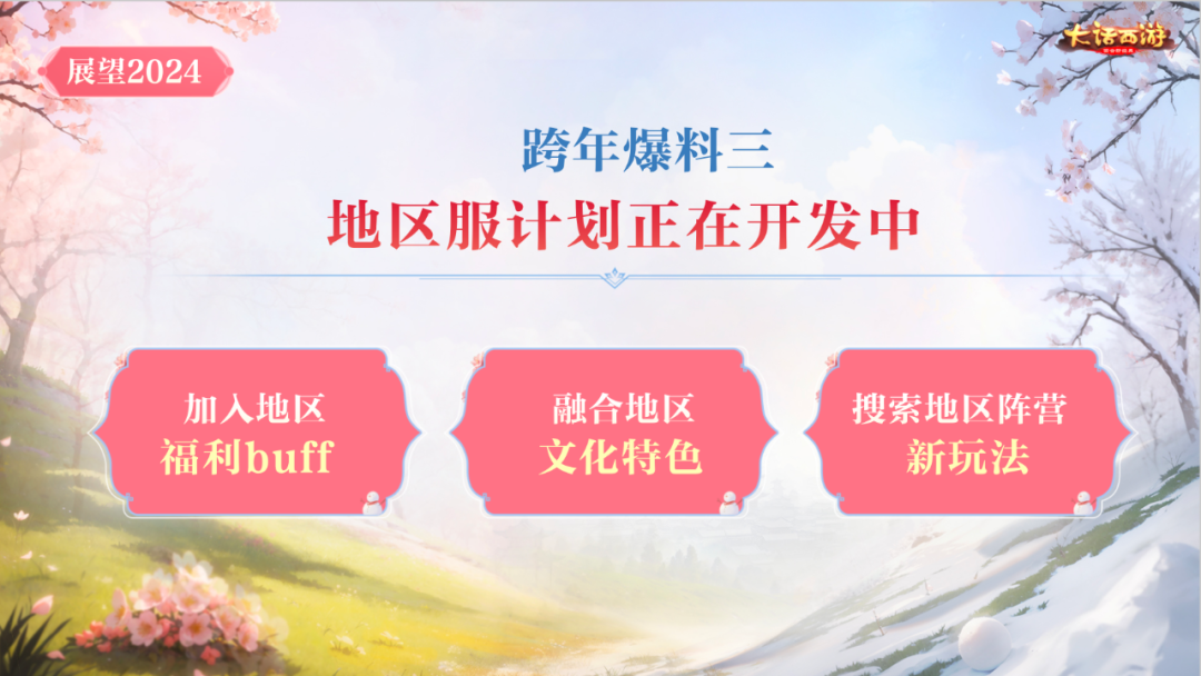 就在昨晚19点跨年特别节目“小年会”正式播出!策划阿福现场放出了超多惊喜爆料内容。 错过直播的少侠也别失望,热心的铁蛋给大家要到了 开发组内部PPT全面预览未来上线内容“史上最强跨年服【2024】”“2024年度三大爆料”“额外惊喜,玩游戏赚钱”全部一一呈现给你,快来看看吧~ 史上最强跨年服【2024】 2024年度三大爆料 诚心回应玩家记忆情感,内丹来了,攻宝宝将迎来加强! 不让三界沦为“时装大话”,加福利减负担,开年即送两大免费时装! 新服无聊重复开?地区服已在研究!特色地域玩法,地域buff来袭! 额外惊喜,玩游戏赚大钱 用真诚谱写跨年新气象 情义回馈八年深情陪伴! 新的一年,我们携手同行 迎接更加美好的大话江湖吧! 更多官方动态,请锁定叶子猪《大话西游手游》官方合作专区。 [编辑:叶子猪小秘书]
