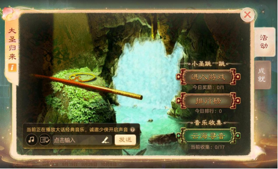 【维护公告】 为了保证广大少侠的游戏体验,《大话西游》手游版将于2024-09-12上午8:00停机,进行每周例行的维护工作,维护时间为早上8:00-10:00,如果在维护期间无法完成维护相关事宜,开机时间将继续顺延,请各位少侠相互转告,并留意游戏时间,以免造成不必要的损失。对于停机期间给您带来的不便,敬请见谅,网易游戏感谢所有少侠的支持和配合! 【大话九周年】 九年陪伴,话为成长!《大话西游》手游周年庆版本9月12日正式上线! 在九周年版本中,少侠们将迎来全新活动场景“花果山”,少侠们将驾筋斗云,越水帘云海,亲手将海量福利带回家!本次活动将分为启程、庆典、献礼、归来四阶段开启。随手点点,轻松不累,80级以上少侠即可参与!本周启程篇(9月12日维护后~9月19日5点)将迎来以下活动: 1)周年见闻大话九周年,重走西游路!你收到大圣来信,应邀前往全新场景“花果山”。然而如今占据花果山的“大圣”似乎另有其人…… 2)云海寻音还记得最初相见的那份悸动吗?云海寻音,历“九”弥新!24首端游怀旧音乐大放送,带你重温经典!少侠可找花果山齐天大圣借用筋斗云,前往云海之中自行寻找宝箱,解锁神秘乐谱,试听怀旧音乐;收集12首音乐即可解锁永久设置权限,经典/怀旧音乐双版本永久自由切换!全收集即可解锁全收集礼包,有几率开出2级五行材料、1级五行材料、终极技能书残卷等大奖; 3)小圣跳一跳大圣跟随玄奘前往西天取经的日子里,花果山群猴千辛万苦,终于在云海之中成功修筑出通往水帘洞的云阶。快化身“齐天小圣”翻腾云海,看看谁先跳得又快又准!每日排行榜名列前茅者更有专属称谓“踏平坎坷成大道”“敢问路在何方”! 4)千灯送福黄金仙器回来啦~这次登场的将是大圣至宝“如意金箍棒”!长安城内放飞福灯,即有机会获得黄金仙器“金箍棒”、917元现金红包、绝版时装等好礼! 5)喊话九周年大话手游生日9月17日当天,上线喊话“大话手游九周年生日快乐#24917”,即可赢取海量游戏周边!iPhone16、飞天茅台、玄天姬故友重逢珍藏手办、逆天魔长枪破空珍藏手办等实物奖励,更有生日动态表情包“大圣崽崽登场”上线免费用,兄弟情义都在”九“里! 6)周年庆欢乐爆9月15-9月17日,上线“爆”周年庆宝箱!开启宝箱过程中如若出现“爆”,即可开启几率圣手奖池,终极技能书、龙兔召唤兽、917元现金红包信手拈来! 7)怀旧音乐寻梦倾听怀旧乐曲,回忆经典大话!分享乐队链接至社交平台,通过组建乐队获取奖励进度,有机会获得2级五行材料等奖励! 8)星君下凡星君下凡与侠士同贺大话九周年,现已降临三界。星君下凡将在全服开放从9月12日维护后一直开启至10月8日5点! 9)周年庆限时活动开启期间,本周周末活动将暂停开放;接下来是福利预告!第二周庆典篇(9月19日维护后~9月26日5点)经典活动《版载千秋》元气丹大放送,福利再度升级,“冰雪魔幻肤”轻松拿,每日抽取神兽大奖;第三周献礼篇(9月26日维护后~10月8日5点)假期轻松减负,庆生百宝城再临,超级福糕、福糕送不停!大圣金箍头饰免费送,签到还有机会赢取白泽!第四周归来篇(10月8日5点~10月13日5点)假期归来,福利加倍!免费“蠃鱼幻肤”,闪耀登场。猴小孙召唤兽调整为100%必得!诸多福利在紧锣密鼓筹备中啦!各位少侠敬请期待! 【周年特卖节】 周年同庆,历“九”弥新!九周年特卖节即将上线,全新时装“悟空”携座驾·筋斗云、座驾幻肤·七彩祥云、翅膀·大圣披风、白虎幻肤、童装·齐天小圣前来庆贺! 1)傲来宝库活动时间:2024年9月12日维护后-10月8日5:00活动简介:传说东胜神洲,海外有一国土,名傲来国。国近大海,海中有一座名山,唤花果山。探索花果山的宝库,获取悟空主题系列外观! ① 悟空时装行者风格时装·悟空可在秘宝宝库中获取,获取时附赠至尊雕塑“破阵·潜龙在渊”抽奖券,有机会获得该实体典藏雕塑;② 座驾·筋斗云与座驾幻肤·七彩祥云全新的站姿座驾·筋斗云与座驾幻肤·七彩祥云可在传世宝库中获取,本次座驾采用了全新材质,为少侠带来腾云驾雾的体验! 获得七彩祥云后附赠授权音乐《小刀会序曲》的解锁道具,可在使用筋斗云与七彩祥云时播放,仅在本次活动可获取,此后永不返场;传世宝库新增“许愿功能”,可许愿传世宝库的首个奖励,首次抽取必定为许愿目标!③ 翅膀·大圣披风独特设计的单侧翅膀·大圣披风可在混沌宝库中获取,象征欲往踏碎凌霄的冲冠之怒化为烈焰征袍; 2)周年特卖活动时间:2024年9月13日10:00-9月21日5:00活动简介:庆贺九周年,节前特卖场限时开启,特惠礼包将于每天10点01分、14点01分、18点01分、21点01分上新,供少侠们选购!抢购中获得的饭粒可用于获得礼包折扣,部分饭粒还可以在节后特卖中使用;抢购所得积分可以解锁空间主题·路在何方、随身特效·安身法等豪礼,获得随身特效·安身法时附赠至尊雕塑“破阵·潜龙在渊”抽奖券,有机会获得该实体典藏雕塑; 3)充值有礼活动时间:2024年9月12日维护后-10月8日5:00活动简介:活动期间,达成充值目标即可获得祈愿次数,祈愿可获得九周年限定头像框·金箍当头、金树叶、高级藏宝图、玄元丹等珍贵道具; 活动期间,可与好友组成“摇钱树小队”,使用金树叶、银树叶培育摇钱树; 小队积分达到目标可获得永久悟空主题限定童装·齐天小圣!不用随机,人人都有! 4)典藏雕塑:破阵·潜龙在渊活动简介:周年特卖节期间,参