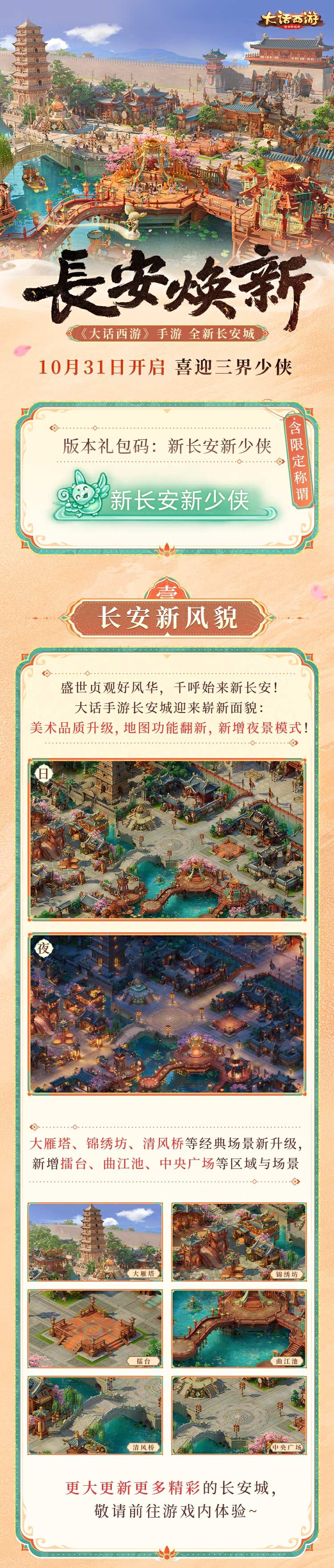全新长安城地图在本周维护更新后(周四)就全服上线了。一起来看看吧。 点击下图放大预览: 更多资讯,请继续锁定叶子猪《大话西游手游》官方合作专区。 [编辑:叶子猪小秘书]