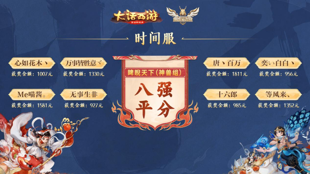 御兽激斗,全民分金! 第三届比斗争霸赛,3月2日圆满落幕! 海选出千人,后再历经多轮淘汰角逐, 最终决出35位胜者,瓜分30余万赛事奖金。 各位请看,都有哪些少侠收获了蛇年赛事的“第一桶金”吧~ (下图所示奖金,均为税前金额) 【道具服获奖名单】 【时间服获奖名单】 恭喜以上少侠,荣获赛事名誉! 三界共鉴,比斗封王。 历经鏖战,新晋比斗王终以无双策略问鼎三界之巅! 在此亦感谢数万参赛选手的热情参与! 共同期待明年比斗争霸赛,诚邀三界侠士共赴比斗新程! 更多赛事资讯,请锁定叶子猪《大话西游手游》官方合作专区。 [编辑:叶子猪小秘书]
