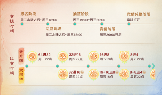 大话西游手游第36届群雄逐鹿争霸赛今日燃情开战,从10月22日到10月6日3支问鼎队和顶尖64强将上演5天的精彩对决,最终胜者将成为全服冠军,登顶巅峰,名震天下! 【激战5日,胜者为王】 道具服赛事将根据水陆大会排名,32个服务器分别选出战神队、奇袭队共64支队伍展开竞争,从10月22日开始激战5天,64强队伍将会在晋升组或突围组中过关斩将。 晋升组的四强和突围组的唯一胜者,将会和问鼎队3强进入最终的8强晋级赛,在10月25日进行8进4的对决,并在10月26日20点争夺最后的冠军!同时,本届争霸赛结束后,巅峰赛S10参赛名额也将全部确定。 时间服赛事将于本周四22:00开赛。8支战队将开启为期4天的角逐,冠军王座究竟花落谁家?让我们拭目以待! 【七大平台,赛事直播】 本届比赛将于CC直播、斗鱼、微信视频号、抖音、优酷等7个平台进行直播。请各位大侠锁定《大话西游》手游官方直播间,一起关注本届群雄逐鹿争霸赛的激烈赛况! [编辑:ssc]