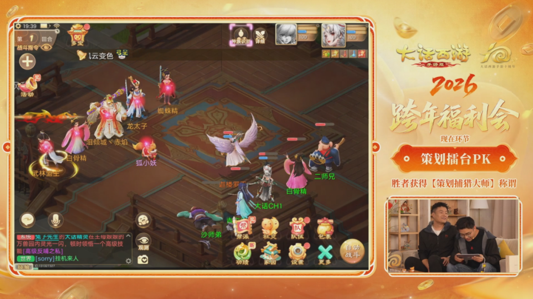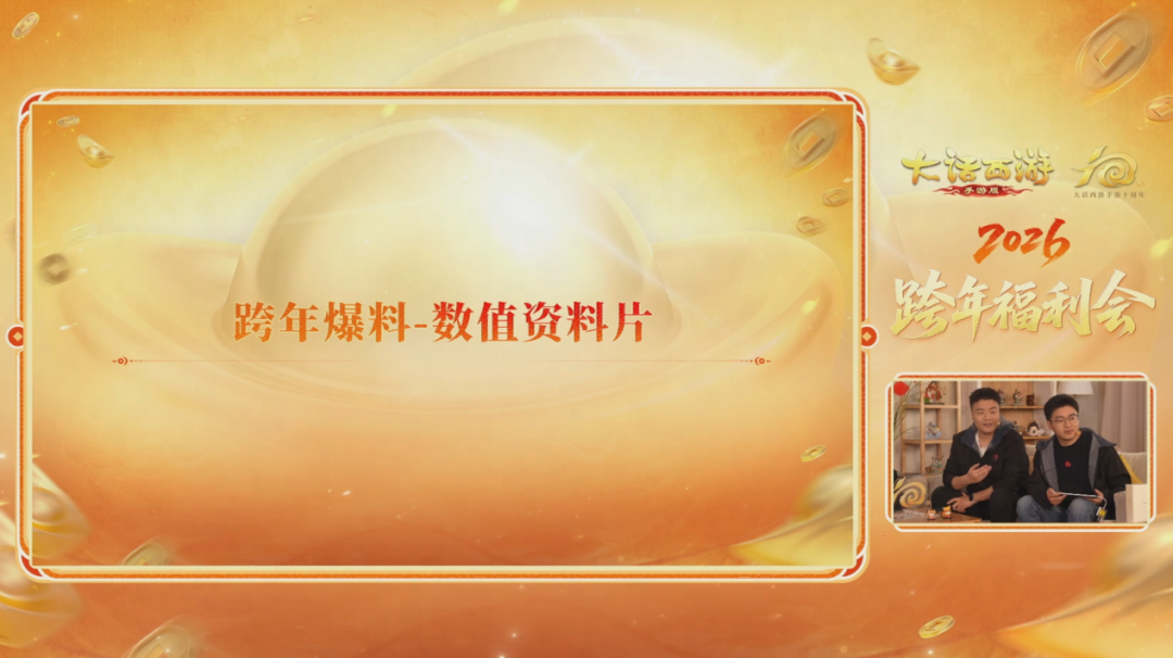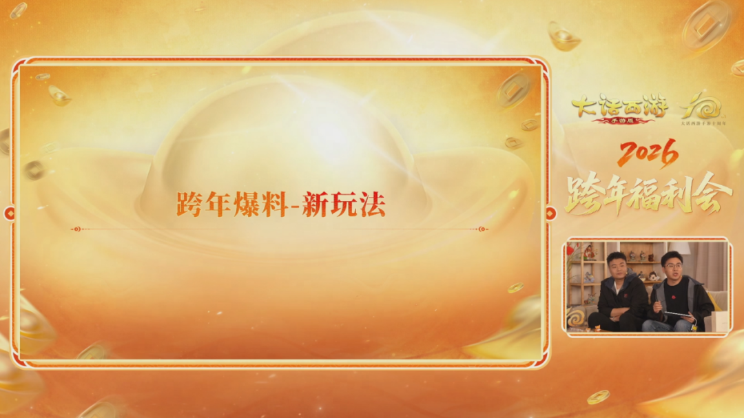 大话手游2026跨年福利会回顾:春节召唤兽和新珍稀神兽大爆料,单平台超3万人同时在线,齐聚抖音官号参与大话《2026跨年福利会》狂欢盛宴!昨晚的直播盛况,各位少侠都看了吗? 直播现场惊喜连连,主策划带来2025年终述职报告,各职能策划更是轮番上阵,甩出2026年重磅爆料——马年春节召唤兽、全新珍稀神兽、新数值资料片、帮派焕新、全新玩法等超多干货内容。 话不多说,铁蛋这就为大家奉上超全直播亮点回顾~ 亮点回顾一2025年度策划述职 2025全年深耕细作,策划团队圆满兑现年初立下的6大承诺!? 更丰富的策略:推出2025年夏季推出了回合制独创“召唤师”新门派神裔,深挖世界观与战斗策略,持续打磨数值平衡。明年还将上线全新数值资料片,带来更多策略博弈空间。 更多的福利,更刺激的几率:全年四季福利不间断,春日鸡驴服、夏季减负新服、秋季十亿补贴+永久座驾、冬季交易优化轮番登场。这份福利加码的节奏,明年将继续延续! 更有趣的玩法、更丰厚的奖励:“暴打开发组”、“长安保卫战”、“御兽争锋”等玩法引爆三界。未来策划团队将吸纳玩家宝贵建议,推出更多脑洞大开的趣味内容。 更多国风设计、更还原端游、更多创新外观、更具传统文化的画面表现:始终坚守国风设计底色,推出十周年限定国风外观与个性化展示系列;同时大胆尝试葬爱系列、大雷摩托等情怀创新,把握内容设计尺度,兼顾经典与新潮。 更自由的交易:打造回合制手游全新交易格局,自由交易服上线后人气屡破纪录。后续还将同步优化交易服与道具服,全面升级玩家交易体验。 更热闹的服务器:上线鸡驴服、养生服等特色服务器,稳步推进合服与跨服玩法优化,打造了更热闹、更具活力的游戏生态环境。 亮点回顾二2026内容大爆料 ①春节限定内容:召唤兽与外观焕新 马年春节将推出巾帼召唤兽【照夜】,其原型为东海受周穆王八骏仙气滋养的仙草,承少女遗志化形为身着利落官服、头戴唐朝官帽的敏法宠,独有“协击”机制,可在友方单位释放伤害或控制技能时协助攻击。神兽【永】将化身传说中的“穆天子”,与照夜共同唤醒八骏。同步上线憨态可掬的小马座驾【马上来财】,为玩家送上新春财运祝福。 ②全新数值资料片《一念圣魔》来袭 2026年即将推出全新数值资料片《一念圣魔》,核心聚焦套装与装备体系深度拓展: 双套装系统正式开启,玩家可同时激活通用套装与种族套装,支持多元组合策略(如龙族可联动霄汉与幻影实现隐身压制+附混控制),同步新增部分新套装并重构旧套装,丰富搭配选择。 经典护身符系统焕新上线,打破高级装备、神兵、仙器的类型区分,全民共享公平数值养成体系,同时引入全新养成方式与“鸡驴体验”,珍品护身符支持交易,为玩家提供致富可能。 ③新珍稀神兽【广陵】登场 2026年嘉年华将推出“文人四艺”收官之作——珍稀神兽【广陵】。 该角色灵感源自嵇康,以太行山焦木为身、吸难老泉水生机,造型尽显“魏晋狂士”风骨,兼具强力全面的面板数值与创新技能机制,获取方式突破传统五行珠合成。 同步开启大话西游与山西文旅的联动活动,推出以临汾小西天悬塑为3D战斗背景的创新副本【小西天】,邀玩家“入晋”感受千年胜景。 ④帮派体系焕新,联赛与地图新升级 2026年帮派革新计划重磅启动,为帮派兄弟带来专属狂欢: 全新“帮派联赛”上线,全服顶尖帮派同台竞技,争夺“大话全服第一帮派”荣誉与海量珍稀奖励。 开放面向全体帮众的“帮派精英战”,无论核心骨干还是活跃成员,均可与兄弟并肩作战。 焕新帮派地图,打造更大、更华丽、功能更丰富的帮派家园,支持多元活动开展与拍照留影,满足玩家自定义帮派风貌的需求。 ⑤全新玩法魔王窟副本【驱神大殿】 魔王再临,三界震动! 2026年推出魔王窟全新副本【驱神大殿】,场景以顶天立地的巨猿脊骨为基底,呈现善恶交织的极致视觉冲击,玩家需沿脊骨攀登、穿越狂风与善恶两极,挑战巅峰处的“一念王座”。 BOSS禺狨王作为首位双形态BOSS,可自由切换两种法宝,实时改变战场节奏与机制,考验玩家操作与团队配合能力。 亮点回顾三线上直击策划问答 问题1 玩家:把端游那些战斗音乐都弄到手游行不行? 策划:这块我们其实一直有在坚持做,现在游戏里已经有大量的原汁原味的IP音乐在里面了,后面也会继续持之以恒继续做的,让游戏内的音乐越来越丰富!除了音乐之外,一些经典玩法我们也有在做,比如最近游戏内新上了护送商旅的经典玩法。 问题2 玩家:男人能不能加强,男魔能不能加强? 策划:这些在接下来的资料片和数值调整版本里我们都会对应进行调整,保证我们各个种族的平衡。 问题3 玩家:不要强推焕新版行不行? 策划:焕新版和原来经典版其实都是同一批美术在做的,首先跟大家保证,并没有美术更换,大家视觉上的感受变化更多来自于,我们用了不同的技术来实现不同的视觉效果。因为在我们提升产品体验的过程中,更创新的美术或者更自由的玩法,都需要更新的技术表现来支持。但也希望大家放心,考虑到每个人审美不一样,如果有些少侠不认可焕新版的表现的话,可以继续使用经典版的美术,我们的两套美术都会一直一直保留下去的,不用担心焕新版会替代取消掉原来的经典版。在情怀和创新之间,我们会努力做好平衡的,请大家放心。 问题4 玩家:御兽争锋能否上线