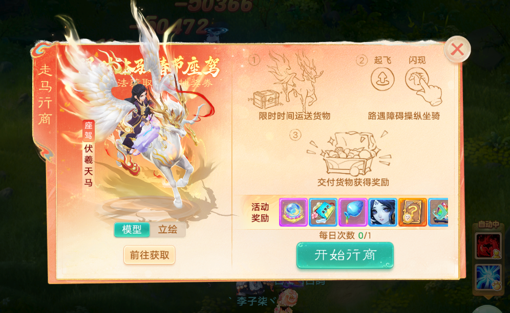 【新春佳节】 新春佳节,马到成功!春节活动将在2月5日维护后陆续开启!超多福利陪你迎接马年春节!永久外观、福糕神兽马上就到家! 走马行商 全新座驾【伏羲天马】降临,参与玩法即可轻松获取奖励! 活动时间:2026年2月5日维护后-2月19日5:00 1)少侠每日可以骑乘全新陆空双栖座驾【伏羲天马】,参与行商活动,期间可能出现各种阻碍,借助座驾即可脱离困境,完成任务,获取奖励; 2)福利升级,新春佳节期间(2月12日维护后至2月19日5:00),少侠每日晚22:00至次日5:00,还可组队参与行商自动挂机玩法,获取高额召唤兽及内丹经验; 五福临门 盛世佳节,唤兽献礼,五福临门玩法开启。 活动时间:2026年2月12日维护后-2月19日5:00 1)少侠每日可以通过登录游戏、活跃度、参与春节活动等方式获取抽卡次数,来组建自己的卡牌组合; 2)当达成特定的卡牌组合时,提交卡组会有额外的计分奖励; 3)每日提交卡组还能参与福气值排行榜,排名前列的少侠还有机会抽取超级凝神丹~ 八骏争春 八骏争春,马到功成!游历大唐四方寻得宝马良驹一同历练吧! 1)化身相马师伯乐与各种宝马伙伴一同战斗,宝马们还可以通过习得各种秘法来提升战斗力! 2)每个精英关卡还可以重复挑战参与排行获得奖励哦!全通关卡还可以抽取全新春节召唤兽照夜哦! 减负福利 1)春节期间在线无忧!单人和组队离线时间延长至4小时和8小时; 2)春节活动期间金扫帚无限制,春节活动也将投放金扫帚! 3)新春佳节期间(2月12日维护后至2月19日5:00),少侠每日晚22:00至次日5:00,还可组队参与走马行商自动挂机玩法,获取高额召唤兽及内丹经验; 4)春节期间(2月5日维护后至3月4日5:00)暂停周末活动,春节活动的活跃度获取大幅提升; 更多福利 春风送暖福常在,月满灯时礼未央!大年初八,更多活动为大家带来更多福利。详细内容敬请期待~让我们大年初八,不见不散! 福利活动一:新春礼包 送你一份新春礼包,恭祝少侠龙马精神,马上发财! 福利活动二:新春摇钱树 摇钱树下招财进宝,新春时节喜气盈门。 福利活动三:迎祥纳福 新春当然要祈福啦,礼拜福寿禄三位神仙,将会获得一整年的好运气,还有意想不到的收获! 福利活动四:幻境除妖 少侠将化身照夜,勇闯幻境,一路披荆斩棘,消灭沿途的妖魔鬼怪。 福利活动五:春锋靖野 春锋淬就天地光,靖野宁息万顷尘。境内小妖作乱,请少侠亮剑,还新春万物祥和。 福利活动六:新春赏金 新春玩新服,新服送现金!进入新服,领取少侠你的新春现金红包。 新年除祟 新年除祟,万象更新!驱散旧岁晦暗,喜迎新春鸿运! 活动时间:2月5日更新后-3月5日5:00 1)活动期间每日参与春节活动可获得“除祟爆竹”,每拥有100个“除祟爆竹”即可进行一次燃竹祈祥,每次燃竹祈祥需要花费一定时间,完成后可获得福糕等精美奖励。 2)特殊祈祥:累积完成一定数量的祈祥后,就可以解锁特殊祈祥-武器幻肤·呲花报喜。 3)杀怪除祟: ①祈祥仪式除可邀请好友助力减少时间外还可使用祈祥加速券进行加速,每张加速券可加速十分钟。 ②每日可前往指定地点进行杀怪除祟任务,前20次任务可获得人物经验,还有概率获得祈愿加速券,完成20次任务后必得祈祥加速券及除祟爆竹! 佳期有约 佳期有约,新春献礼!签到领幻肤,转盘赢豪礼,共庆团圆年! 活动时间:2月5日维护后-3月5日5:00 1)活动期间每日可签到领取奖励,福糕,聚魄丹等豪礼送不停,完成3月4日签到必得迦楼罗王·天宫马倌! 2)2月23日起每日最多可以进行4次补签,多次补签需要消耗少量银两。 3)每累计签到三次可获取一张神兽抽奖券·锁,2月24日5点后可消耗666666银两解锁,3月3日可参与抽取神兽大奖,若未抽中大奖银两全额返还! 新春红包雨 团圆新春,鸡驴不停!鸡驴大神下凡三界,豪礼相送! 活动时间:2月16日-2月17日 1)除夕11:55,19:55,21:55,初一11:55,19:55开启倒计时,对应整点开抢红包,多种惊喜豪礼等你来抢 【鸿福特卖节】 金蛇吐瑞辞旧岁,玉马奋蹄迎新春!一年一度的新春鸿福特卖节将于维护后开启,带来特惠礼包、全新飞行座驾伏羲天马、马年新春召唤兽照夜、全金奇珍武器幻肤金骧传世、奇珍时装羲皇耀光、羲皇耀夜及大量丙午马年新春限定外观,各位少侠敬请期待! 活动时间:2026年2月5日维护后~3月5日 佳节返场 活动时间:2026年2月12日维护后-2月26日5点; 超级人气的返场外观即将归来,更多种类,更加绚丽!一起看看都有哪些返场外观吧: 1)背景卡:龙韵皇城、碧海银滩、万邦来朝、封神榜; 2)座驾:神狮御福、赤兔、太平吉象、吉兔游仙、飞天腾蛇等; 3)精美时装:青花玲珑、龙御九霄、天上谪仙人、女娲启灵等; 4)珍稀召唤兽幻肤: 年·春昼雷狮、朱雀·北冥神羽、玄武·二郎真君、青龙·天星卧龙、白泽·墨麒麟等; 还有头像框、气泡、足迹特效、随身特效、空间挂饰、空间装扮等,数不过来了,对了,别忘了还有醒狮头饰哦! 每日夺宝 活动时间:2026年2月15日5点-2月24日5点 火热的一元夺宝现已升级为每日夺宝!每日两场超值夺宝,时间更自由,还可幸运瓜分超50亿银两池! 1)本服夺宝:每次消耗18仙玉购买1个自选1级宝石,即可获得额外夺得稀有宝物的机会。高级藏宝图、龙之骨、五色珍露、聚魄丹等珍贵宝物等你来赢! 2)全服夺宝:抢购宝物仅需半价9仙玉,即可有机会抢购龙兔、岁辰、小范式等特殊召唤兽,还有终极技能书、2级五行材料等极品奖励! 3)银两瓜分:每参与1场夺宝即可获得1个不重复数字