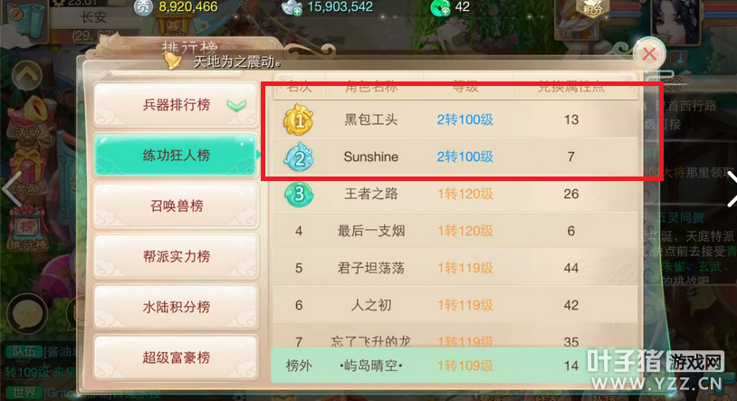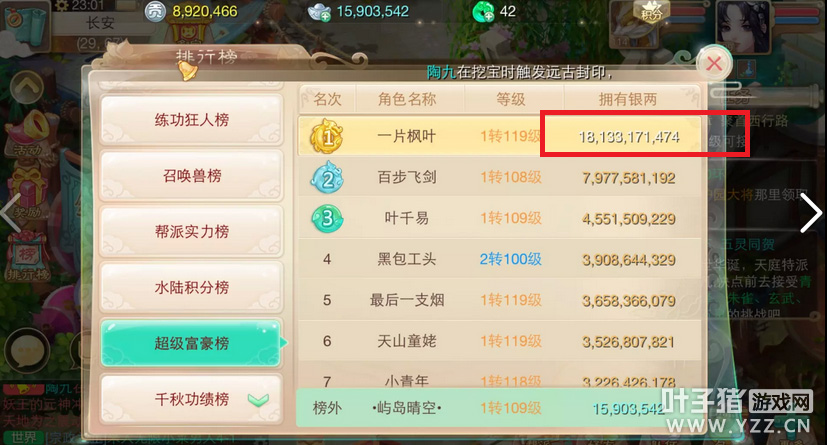 被称之为土豪区的IOS今天再度逆天,该用什么来形容他呢?土豪?神豪?印钞机?都不合适,似乎人类已经无法阻止他的脚步,他就是IOS一区相聚长安的一片枫叶!超级富豪榜第一的存在。 携带银两180E 这是要买什么?神兽?仙器?还是要开海天盛宴!!! 我们来换算一下1000块钱=3E,一万块钱是30E,180E也就是6万快- - 这位豪中豪要拿六万的银两来做什么呢? 我们也不得而知,似乎看上去排行榜都快要显示不下了,看来花花真的要去IOS走一趟了! OK,看过了富豪,下面我看来看看练功达人吧! 话不多说直接上图,2转100级玩家今日首度在IOS相聚长安登场!这速度是不是吃药了?真的是停不下来!!! ▌关于游戏: 大话西游同名手游在玩法上继承了端游的经典玩法。诸如婚姻、家园、庭院、结义、PK、帮战、联赛、皇宫、五环、杀星、挖宝、做天、修罗、地宫、杀塔等大话2玩家所熟知的要素都将在针对智能手机特性优化后加入。而最受大话2玩家喜爱的情义社交体系,如帮派、结义、师徒婚姻系统等也将移植到手游版上。 2015,大话西游同名手游,话回青春,不见不散。 2015,大话西游同名手游,让我们静待这一次的青春到来。 大话西游手游官网:http://xy2.yzz.cn/sy/ 大话西游手游下载:http://www.yzz.cn/ku/dhxy/ 【叶子猪手游通大话手游QQ交流群】 叶子猪为广大玩家提供最活跃的QQ交流社区,在这里你可以畅所欲言,交流心得体会等,Q群更是会不定期内举办活动,越活跃得奖励的机会越大哦。 群号:213794076 [编辑:Dickson]