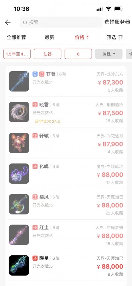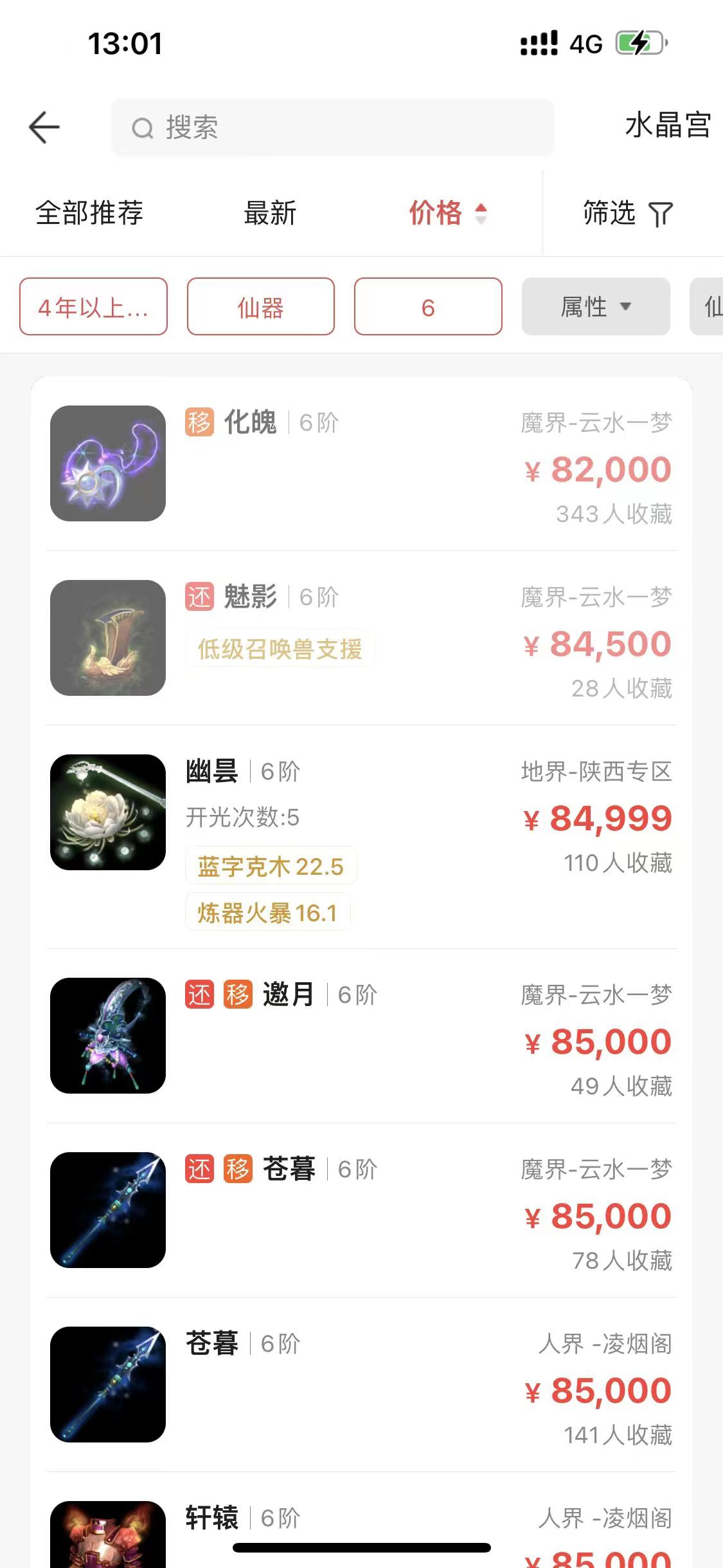 说实话,如果我知道物资价格一定会涨回去,现在我借钱也去把格子里的东西能点多少点多少。其实很多人无形中都给大话的物资增加了一个“投资”属性的标签。大话的物资相对来说是非常稳定的。如果我10年前买一堆仙器之类的高端物资,现在已经可以躺平了! 4年下6阶仙器价格