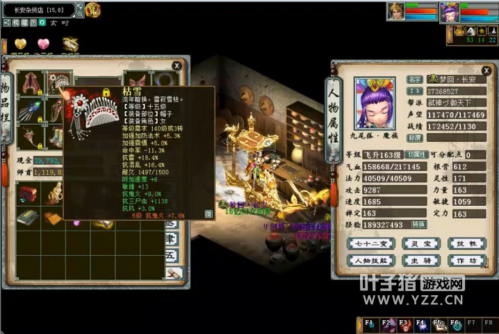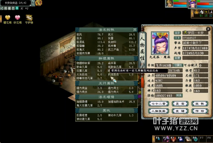 来看600根骨平民女魔的调抗细节,平时混天梯帮战等PK都还不错哦。 先看抗性界面:仙法鬼火较为出色,但人法缺低得可怜。 |