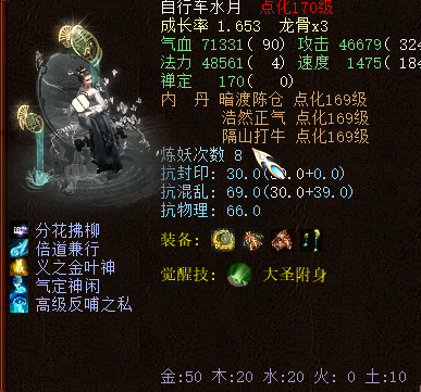 帮朋友挂机风情,看到队长带水月镜花,携带的大圣附身,抽秒之后补刀,效果不错,抓了个动图和短视频~ 抛开觉醒不说,看到水月镜花触发分花拂柳之后分体也能触发雾里看花这个种花BUF,觉得伤害还是很可观。触发水中探月+插花BUF场面炸裂感还是挺养眼的。 先看这只水月的技能以及亲密,接着上实战效果: |