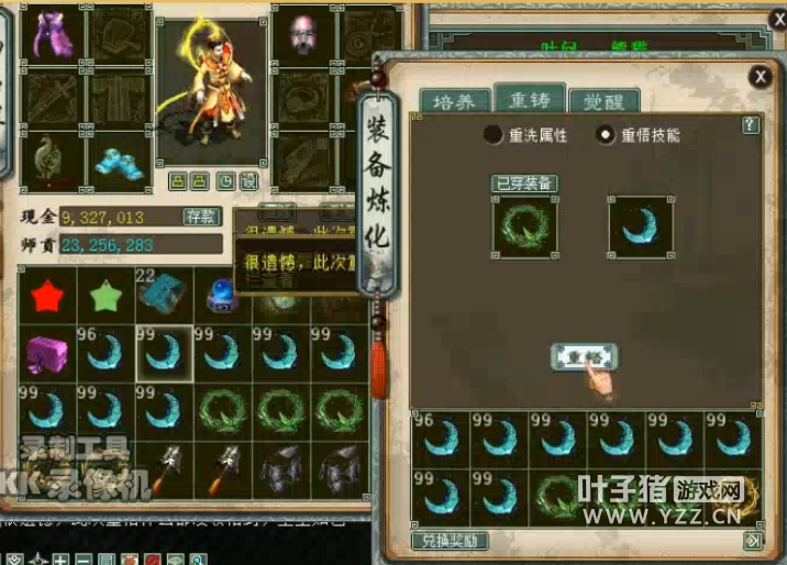大家都知道乾坤一掷和大圣附身价格比较高?那么具体这个属性有多难洗?我们今天一位玩家用9组隐月来挑战下几率,看能否洗出高品质大圣和乾坤。 |
