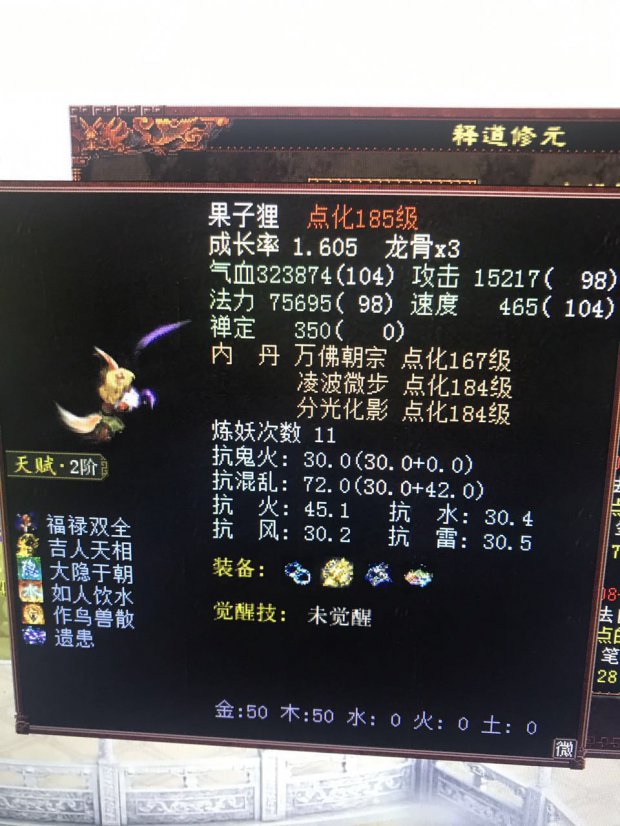 服务器:碧波潭 招募对象:一名3-5化5绝6鬼火,5遗忘霄汉鬼;一名2化5绝以上回血鬼! 队伍资料:男人目前5化双6武器,可以持续投资冰衣服帽子,5个化无,绝境、大当等若干。女魔目前5套3化,其他终极若干,可以持续投资。仙目前6雷武器,帽子,5阶变态火法武器,不死宝宝12只。正在收6雷衣服,6火法丝带,觉醒技等。 联系方式:QQ:2541655738,微信:15133400002 代表性物资展示: 男人六阶冰武器