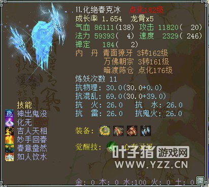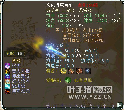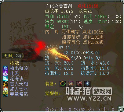 队伍介绍:队伍现在是2鬼1男人1仙的常规队,霄汉鬼13化6套大力破什么也都有,回血鬼是6级双回6套9化,男人双6套11化,火力三套法术忽如神兽终极若干,队伍也都在持续投资,后期投资不是问题。