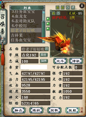 服务器:天若有情 队伍:目前双男魔3450主速,3350敏男魔可敏可附混可大力、忽视混50多男人。2750敏6级雷法炮。3年2化无一坐鸟还有其他终极。以下是部分物资 招募:小资敏队找5-6阶克木残梦火法仙,要求带子虚,有3700+功灵宝和2000敏功灵宝或敏3700的金击子,能来的4年以上区天若有情。 联系方式:需要的联系QQ442023733或微信442023733 装备展示 灵宝展示 召唤兽展示 <<点击进入大话西游2论坛讨论>> [编辑:米奈]